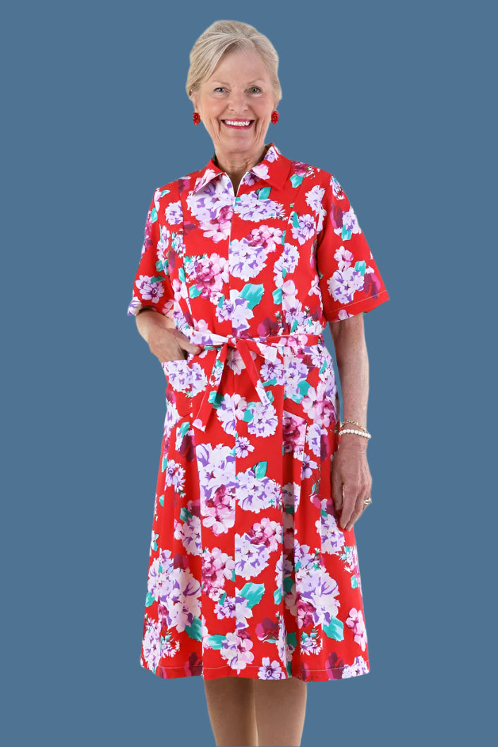 This classic house dress blends vintage charm with caregiver-friendly details, offering reliable comfort and a crisp appearance. The soft cotton/poly blend resists wear and stands up to frequent laundering, while the thoughtful cut maintains modesty and ease at home.