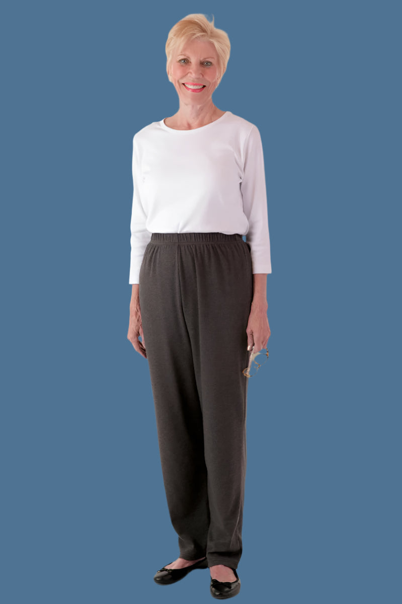 Our pull-on knit pants offer stretch comfort and durability in an 11 oz cotton/poly knit, making dressing and caregiving easier while ensuring comfortable wear all day.