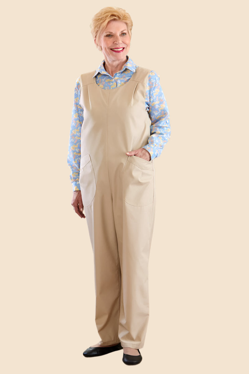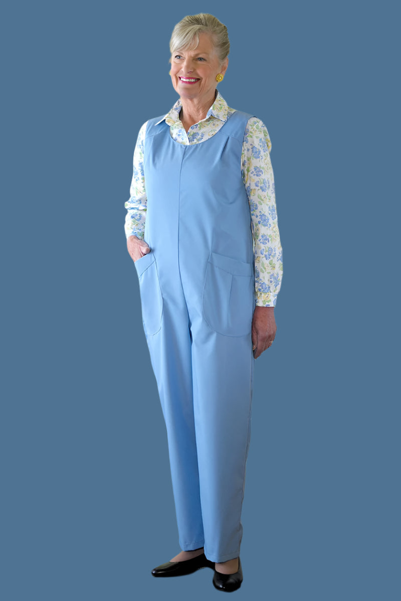 An out-of-sight closure preserves dignity and deters unwanted undressing, while the relaxed silhouette layers easily over any blouse for versatile wear. Gathered pockets complete the look with convenient storage.
